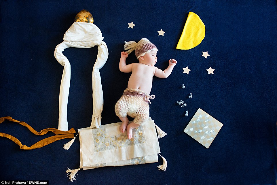 摄影师为婴儿拍阿拉伯神话主题照片(图)