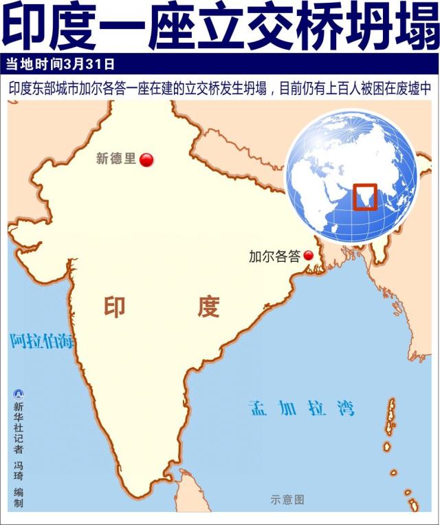 新华网北京3月31日电 印度官员31日说,印度东部城市加尔各答一座在建的立交桥当天发生坍塌,目前已造成至少14人死亡,多人受伤,仍有上百人被困在废墟中。