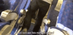 “我让一个空乘帮我翻译,问他是否可以合照。”“他只是耸耸肩说ok,所以我就站在他身边,冲着照相机笑了。空姐帮忙拍的照,这是史上最赞的合影。”