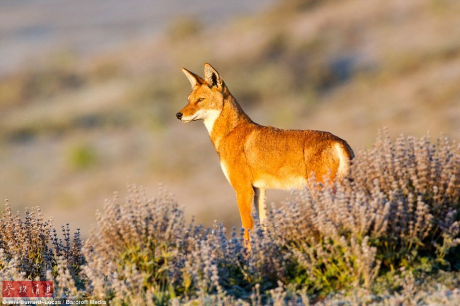 2011年11月,埃塞俄比亚,一只年轻的雄性埃塞俄比亚狼。