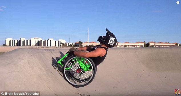 据英国《每日邮报》3月30日报道,出生于美国拉斯维加斯的24岁小伙艾伦 福斯林翰姆(Aaron Fotheringham),虽患有先天性脊髓损伤,双腿瘫痪,但他没有屈服于身体上的缺陷,在滑板公园里上演了一场坐着轮椅后空翻的精彩表演。