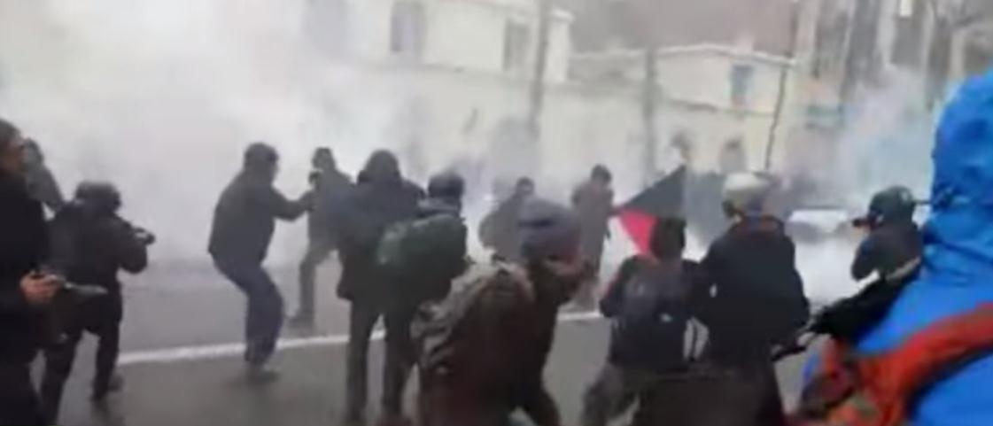 另据《巴黎人报》报道,巴黎1000多名高中生于3月31日举行示威游行。图为冲突画面。