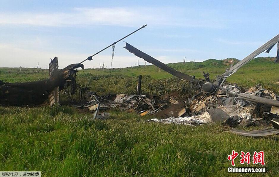 稍早之前,阿塞拜疆国防部发表声明说,有12名阿方士兵在卡拉巴赫丧生,一架直升机被亚美尼亚击落。图为被击落的直升机残骸。