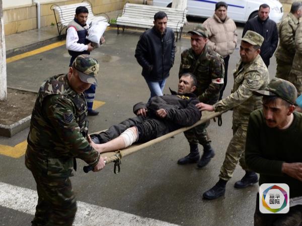 4月3日,在阿塞拜疆境内靠近纳戈尔诺-卡拉巴赫(纳卡)地区的塔特村,一名在冲突中受伤的士兵被送到医院。新华社发