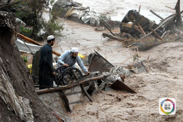 4月3日,在巴基斯坦白沙瓦郊区,洪水冲毁了当地一个市场。新华社发