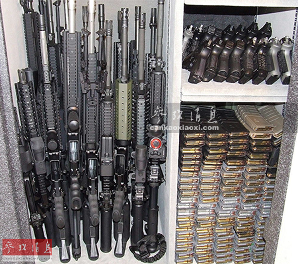 枪柜(用于收纳各种枪械和配用弹药)对于军队和民间军械爱好者都是必备之物,本组图整理了一批土豪枪械迷的枪柜供大家欣赏。图中在这位土豪的枪柜不仅步枪、手枪应有尽有,装满弹药的透明弹匣也十分抢眼。
