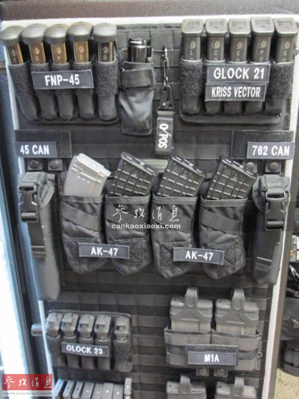这个感觉应该是枪械店的配件柜,因为每种手枪、步枪配用的弹匣型号均有标出,其中第二层45 CAN和762 CAN中装的分别是不同口径枪支所用的消音器。