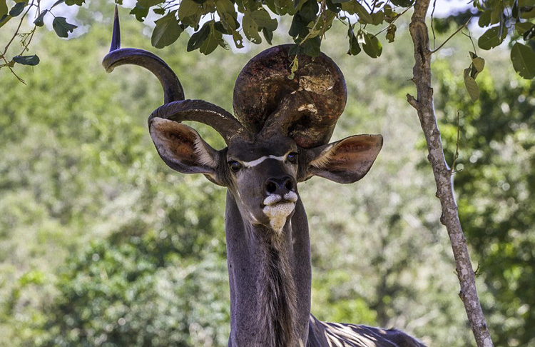 南非一羚羊角上生巨瘤仍自在进食(组图)