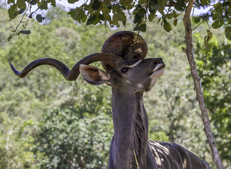 南非一羚羊角上生巨瘤仍自在进食。