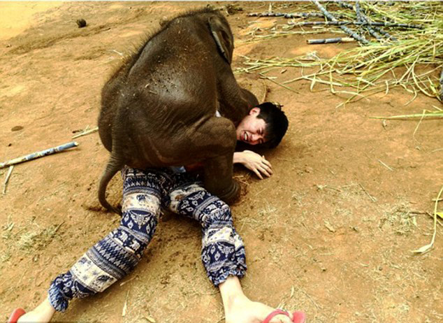 泰国小象爱与游客“零距离接触” 画面温馨(图)
