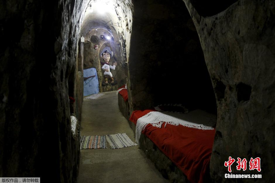 整个地下宫殿目前共有三间卧室供老人及他的家人使用,卧室里的床也是非常原生态,完全是由石头打造的。
