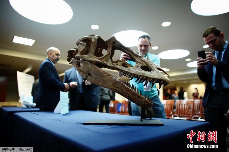 当地时间2016年4月5日,美国纽约,美国归还蒙古国六种曾被走私出境的蒙古恐龙化石。