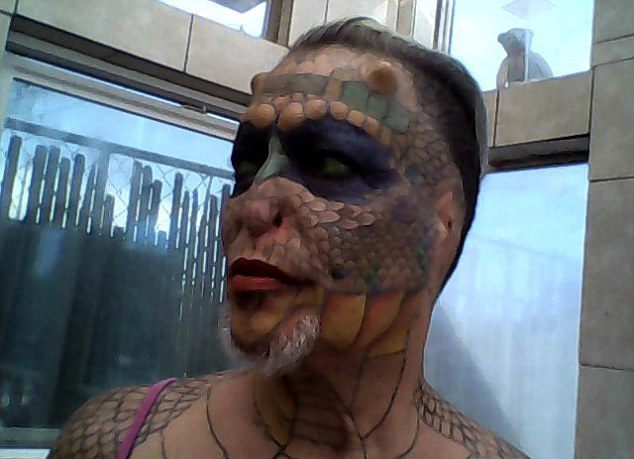 美中年男子整容为成“龙女” 不惜割耳整鼻纹满鳞片(组图)