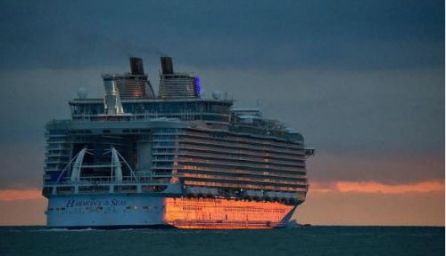 STX造船厂最新出品的“海洋和谐号”豪华游轮属于美国皇家加勒比国际游轮公司,3月初首航,长362米,宽66米,重12万吨,甲板楼层有16层,总吨位22.75万吨,满载客数6000人,船员人数2100人。
