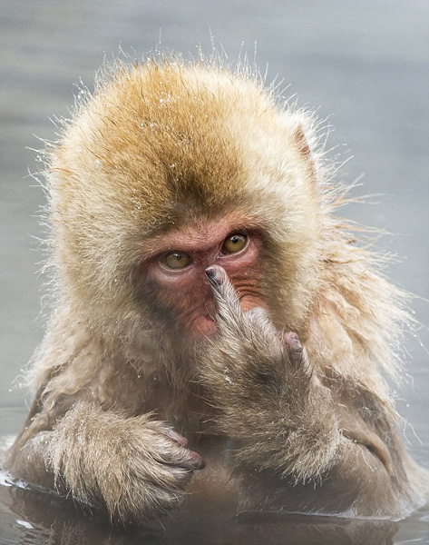日本猕猴晨浴时被偷拍竟竖中指抗议(图)