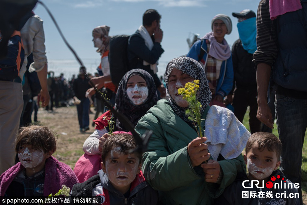 当地时间4月10日,滞留在希腊马其顿边界的大批难民试图闯关突破边界关卡,警察发射催泪瓦斯驱赶鼓噪失控的群众,造成至少260人受伤。图片来源:SipaChina