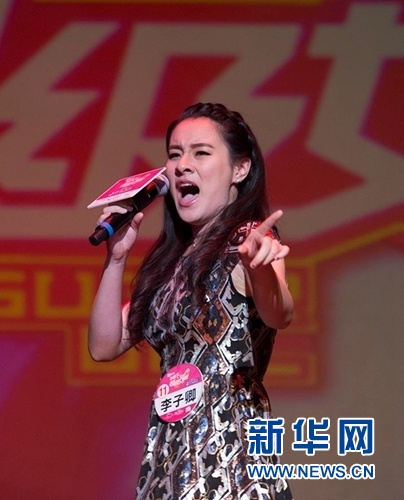 4月9日,在美国洛杉矶,李子卿在比赛中。当日,在几轮海选中脱颖而出的20名女歌手在“超级女声”美国唱区总决赛中进行角逐,17岁的华裔歌手李子卿夺得冠军,将代表美国唱区进入下一轮“超级女声”选秀赛。新华网记者杨磊 摄