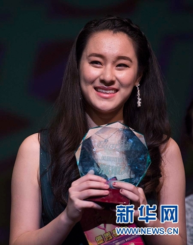 4月9日,李子卿在比赛后手捧奖杯。当日,在几轮海选中脱颖而出的20名女歌手在“超级女声”美国唱区总决赛中进行角逐,17岁的华裔歌手李子卿夺得冠军,将代表美国唱区进入下一轮“超级女声”选秀赛。新华网记者杨磊 摄