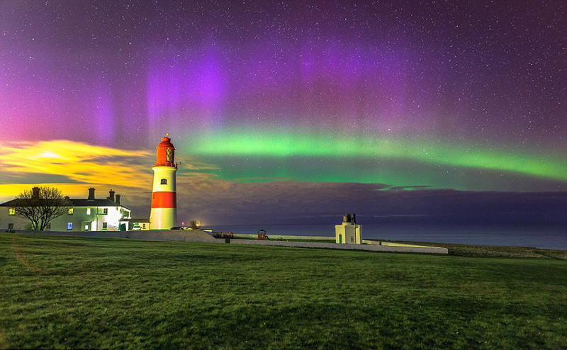美如仙境!英国天空现罕见三色极光(组图)