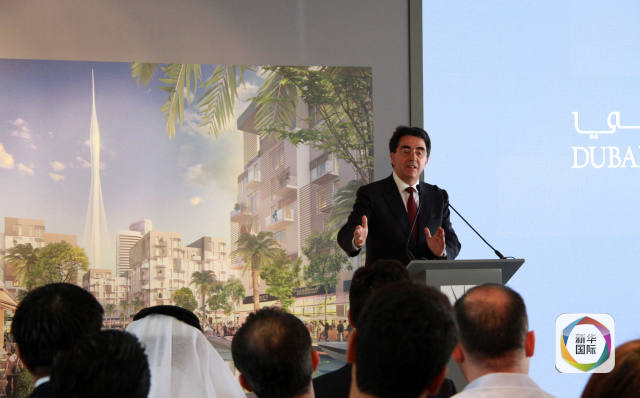艾马尔地产集团董事长穆罕默德·阿巴尔(右)和观光塔设计师圣地亚哥·卡拉特拉瓦