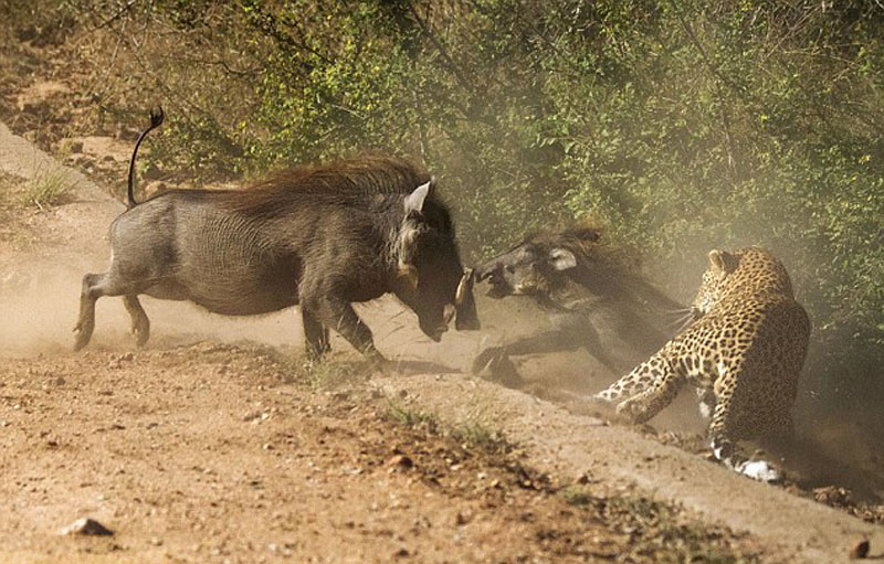 惊险!南非疣猪妈妈勇斗猎豹保护幼崽(组图)