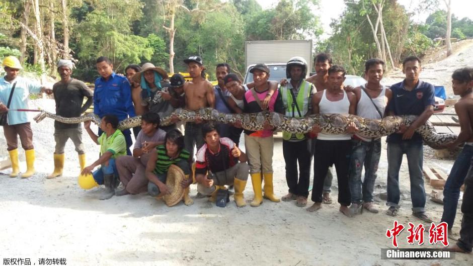 马来西亚发现7.5米长巨蟒 约重500斤(图)