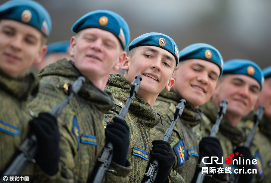 当地时间2016年4月11日,俄罗斯莫斯科举行胜利日71周年阅兵彩排,士兵们用不一样的微笑表达着同样的自豪与荣耀,“点亮”整个方阵。图片来源:视觉中国