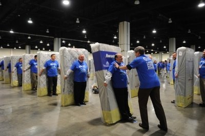 报道称,在活动中,这1200人被固定在1200张床垫上,并被摆放成34列。随后,工作人员将床垫按多米诺骨牌的方式摆放,并在一名工作人员将第一张“骨牌”推倒后,余下的“人肉床垫”相继倒下。