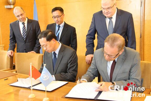 4月11日,中国常驻日内瓦代表团代表马朝旭大使与联合国日内瓦办事处总干事穆勒先生共同就中国捐建“中国厅”签署协议备忘录。万国宫将诞生联合国系统首个以“中国厅”命名的会议厅。