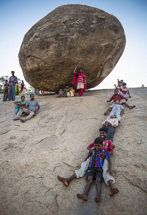 据历史记载,曾有两位统治者尝试移动这块巨石。第一位是印度国王Narasimhavarman,他于公元630年到668年统治印度,他动用了大量人力物力,却无法移动这块巨石分毫。1908年,时任印度马德拉斯总督的亚瑟 罗利(Arthur Lawley)也曾动用八头大象试图挪走这块石头,以免其滚动伤及市民,但结果也是无功而返。