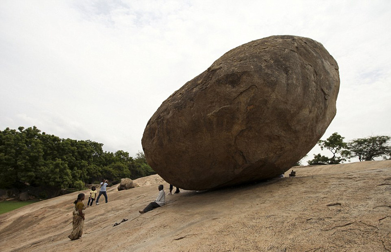 印度250吨巨石斜坡上屹立1300年不倒 成当地奇景(组图)