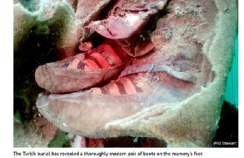古突厥女尸脚上还穿着靴子。(图片来源:台湾ETtoday东森新闻云网站)