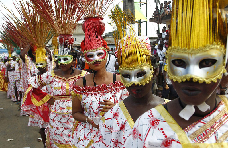狂欢节是科特迪瓦最有代表性的活动之一,也是庆祝当地传统文化习俗的最佳方式。全民积极参与盛会游行,活动历时一周。
