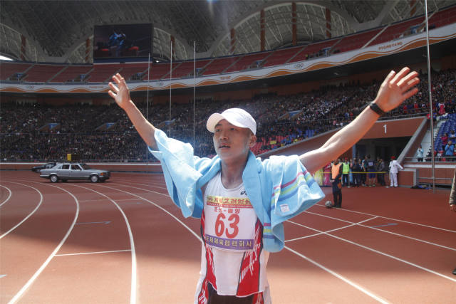 比赛开始2个多小时后,参加全马的朝鲜专业选手朴哲在全场加油声中率先冲过终点,获得男子组冠军,而获得亚军的埃塞俄比亚选手因跑错路线与冠军失之交臂,长跪在体育场痛哭不已。