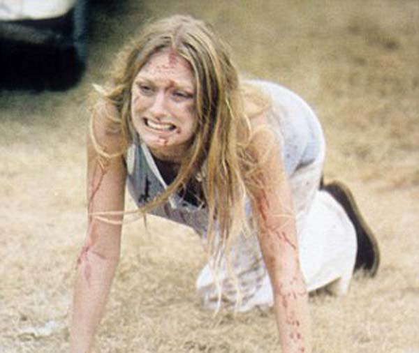图为《德州电锯杀人狂》的场景,电影讲述一群朋友前往得克萨斯州旅行时落入食人家族手中。(网页截图)
