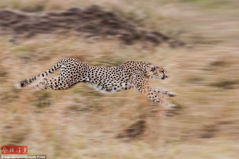 埋伏的猎豹看时机已到,跳出草丛追逐角马。它们的奔跑速度可达110公里每小时,是陆地上跑得最快的动物。