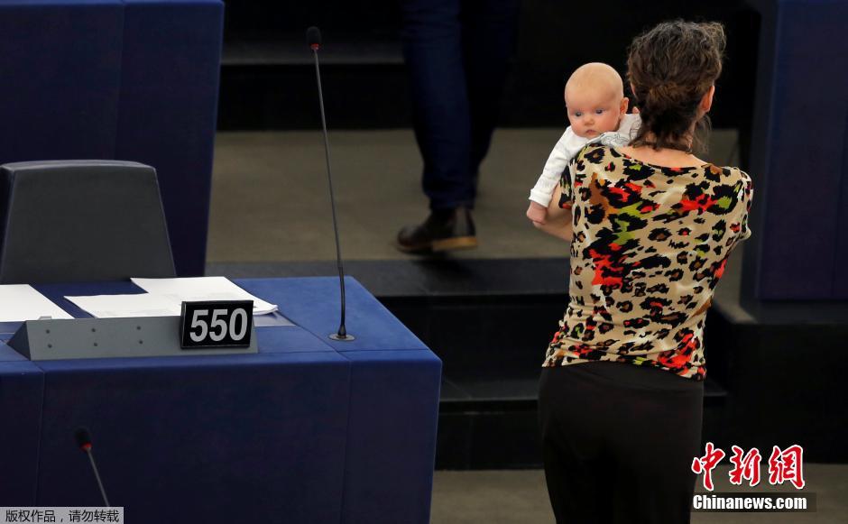 欧盟女议员抱娃开会(图)