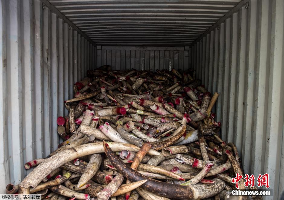 马来西亚野生动物保护局公开销毁大量象牙(组图)