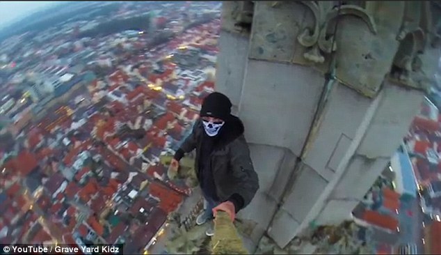 更令人害怕的是,男子在到达470英尺(约143米)高空的时候还在凸出的怪兽状滴水嘴上行走。到达教堂尖塔的时候,仍是徒手依附着墙壁,从一端走到另一端。他还在高空用自拍杆拍下了自己和脚下夜景以及教堂塔尖的合影,甚至还张开了双手,展现自己的无畏。
