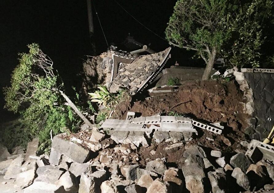 日本熊本县6.5级地震后民居倒塌一片狼藉 (组图)