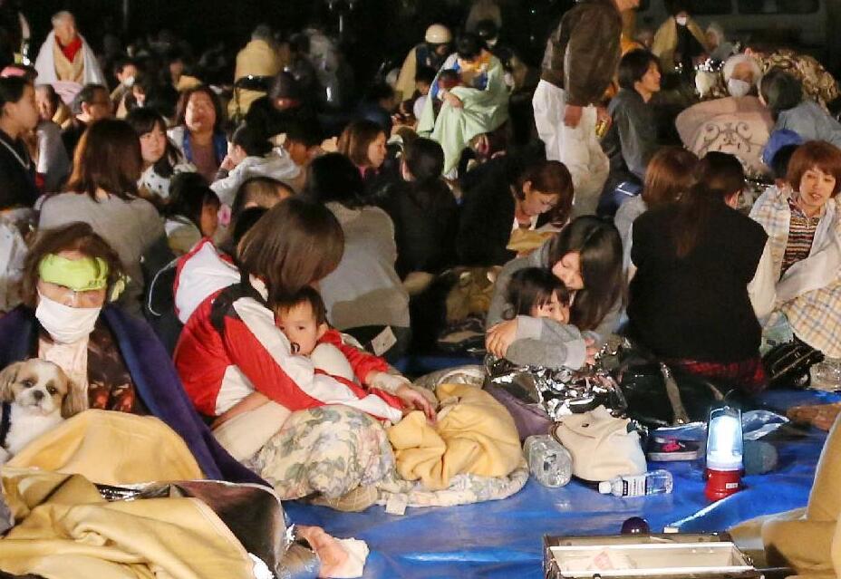日本熊本县居民在露天环境避难,度过充满不安的夜晚。(网页截图)