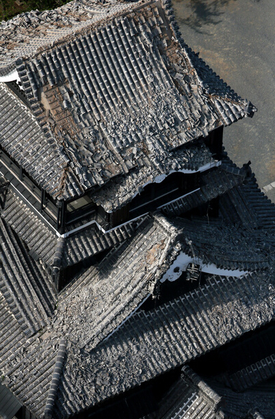 日本熊本县发生6.5级地震地标建筑崩塌(图)