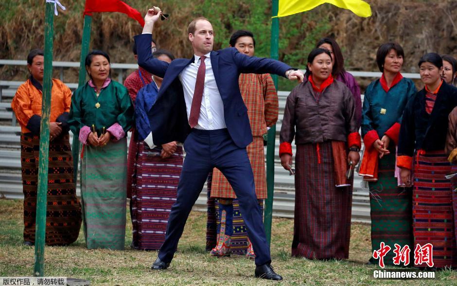 威廉夫妇访问不丹 参加传统射箭飞镖活动(图)