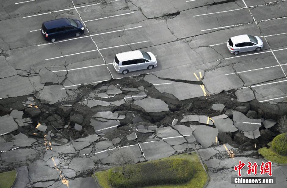 据日本气象厅消息,日本九州4月16日凌晨发生7.3级地震。媒体报道说,地震造成有人死伤以及一些建筑倒塌。日本气象厅在地震后发布海啸警报,不久即解除海啸警报。日本相关机构表示,九州地区的核电站未出现异常。图为熊本的路面在遭遇强震后开裂。 图片来源:视觉中国