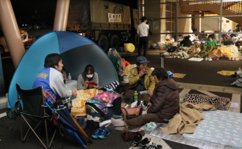 日本发生7.3级地震 灾民在屋外帐篷过夜