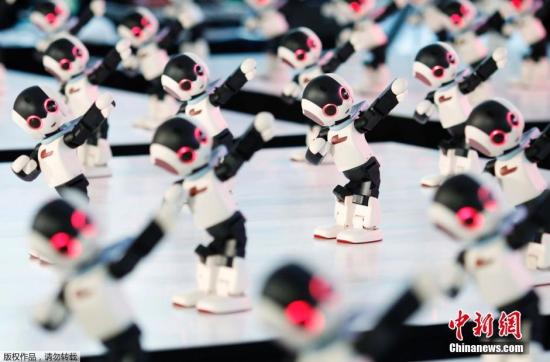 资料图:当地时间2015年1月19日,日本东京,DIY机械展览上100机器人大跳“广场舞”,这批智能机器人高约34.5厘米,还能识别200个日文短语,走路、踢球更是不在话下。