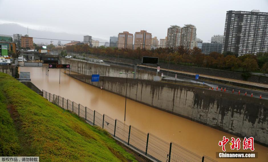 智利首都发生洪涝 商场被淹成“蓄水池”(图)