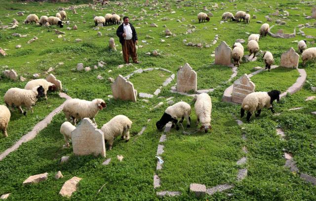 图为摩苏尔大坝附近,当地人在底格里斯河岸放羊。新华/法新。