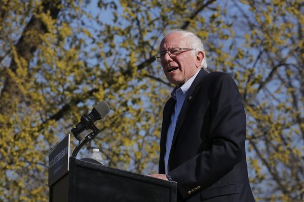 民主党总统竞选人伯尼·桑德斯在纽约参加竞选集会。