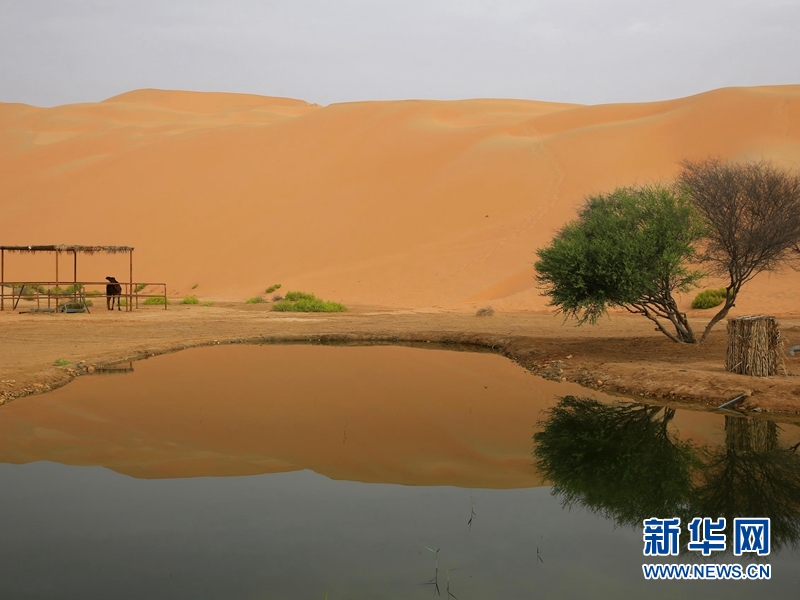 沙山前面的一汪池水(新华社记者安江 马锡平 摄)
